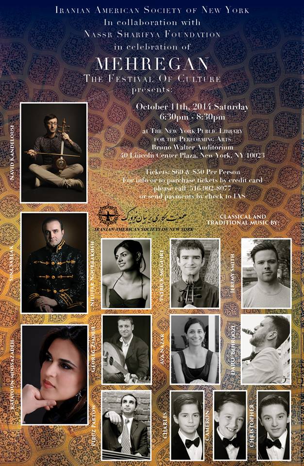 Nilou will be playing at Lincoln Center Public Library October 8, 2014 Nilou Nour Nilou will be playing at Mehregan Festival of Culture alongside other persian classical musicians. October 11th, 2014, 6:30-8:30, Lincoln Center Public Library. Share this: Click to share on Facebook (Opens in new window) Facebook Click to email a link to a friend (Opens in new window) Email Click to share on X (Opens in new window) X Click to print (Opens in new window) Print Like Loading...